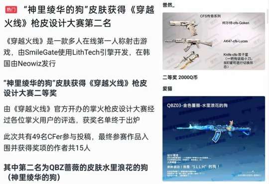 隔壁企鹅游戏举办了枪皮设计大赛,其中,获得第二名的枪皮,素材来源原神的神里绫华。不论是配色,特效,还是上面的那只装饰狗,含绫华的元素有点多。