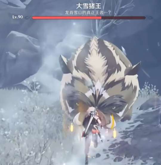 大雪猪王也是玩家在萌新时期会遇到的一个Boss,在雪山七天神像朝右下方飞行,就可以到达冰冻野猪聚集地。使用火元素把冰块打碎,击杀三只野猪后,大雪猪王将会出现。与大雪猪王对战时,通过不同的条件,还可以达成“冷静点”,“十岁差点达到野猪”,“猎人变成了猎物”三个成就。