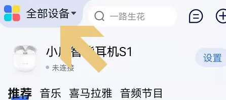 1、打开小度app以后,首先点击首页面左上角的“全部设备”,如果我们绑定过多个设备,那么先要从中找到小度在家才行;
