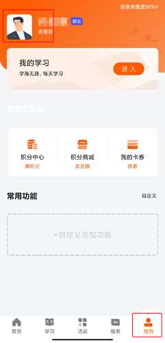 1、用户在我的页面中点击头像;