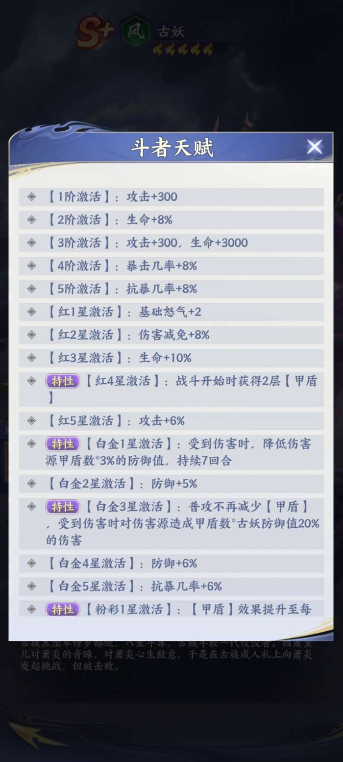 玩家只有对古妖深入了解之后才发现,到了游戏后期,他往往会拥有比较强悍的发力。一般低星的情况下,它其实就是一个简单的前排,等他到了高星之后,他才能够发挥出它的特性,所以说,玩家想要让甲盾效果的提升,通常情况下就需要逐步的提升星级,因为它的强度主要是跟星级跟天赋有很大的联系。