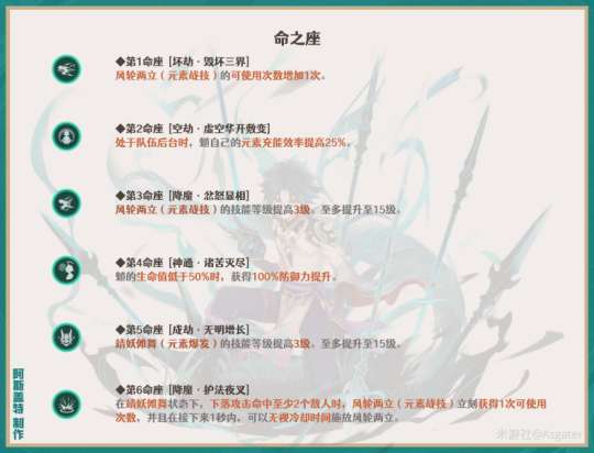 ②.解锁2命后,提高魈在后台的充能效率,在当前环境下,该命座的数值相对保守,不推荐专门解锁,更多是解锁6命的前置命座。