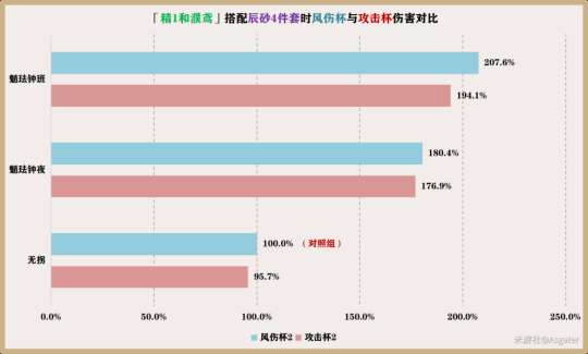 非6命时,由于魈的主要输出方式是开大后的下落攻击伤害,而大招提供了属于增伤区间的大量下落攻击增伤,使得风伤加成与该增伤存在着稀释,使得攻击杯与风伤杯的差距并不大。在选择时可以根据自身所拥有的攻击/风伤杯的副词条属性选择。