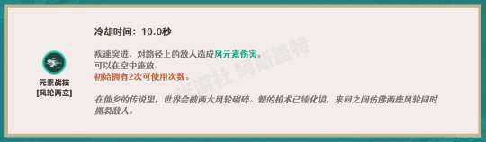 ④.战技攻击为弱风元素(1元素量),且每次战技攻击均可施加。
