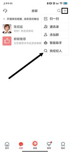 在这里我们再点击右上角的【+】号,这里主要就是各类有关于房产的聊天服务,包括经纪人。