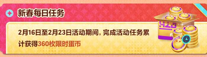 第二项核心活动为“蛋愿成真 分2亿”红包计划。版本更新后,玩家需在游戏内收集六小只角色,合成幸运符。成功合成后开启幸运符,随机获得66至666枚蛋币红包。所有蛋币均为限时道具,须在有效期内使用完毕。同步开放的新春每日任务同样具备高性价比,连续参与可累计获得360枚限时蛋币,任务难度适中,覆盖新手与资深玩家群体。
