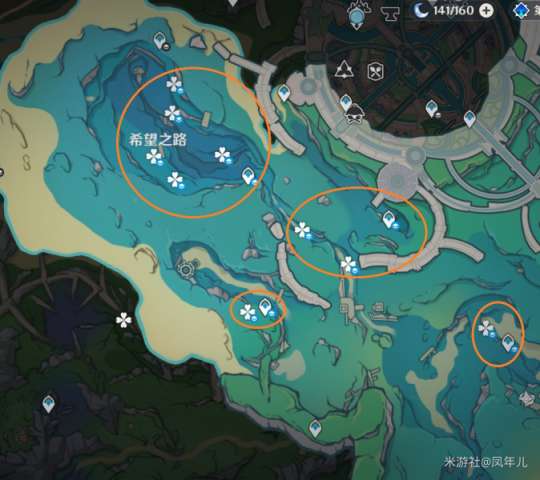 4.海露花点4,右边的激活水元素方碑会下一场小雨,就可以直接摘取