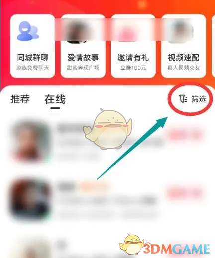 3、进入缘分界面,选择【在线】查看点击添加即可。