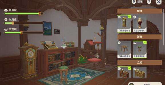 从上到下选择【精准守时】、【率意豪情】、【闲阅书阁】、【辉煌青琅】、【玫瑰红树屋】即可,搭配方式只有一种。