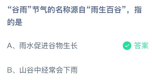 以上就是“谷雨”节气的名称源自“雨生百谷”,指的是?支付宝蚂蚁庄园2026年4月20日答案最新,更多相关攻略,请关注pk游戏网更新!