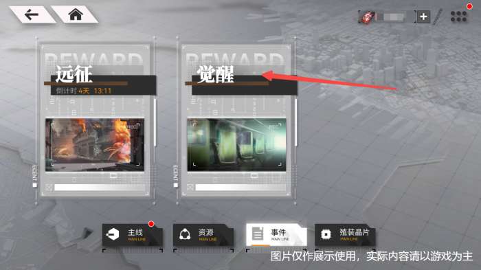 或点击主界面的“作战”,点击“事件”,再次点击觉醒副本作战,即可获取所需资源。