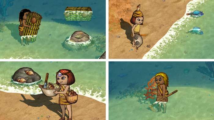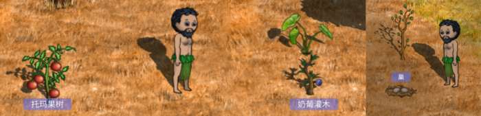 所以对于刚进入部落里的村民,可以随时随地的采集有果实的奶葡灌木和托马果树、鸟巢里的食物,马上食用,应对还未开始建家前的饥饿补充。