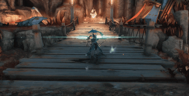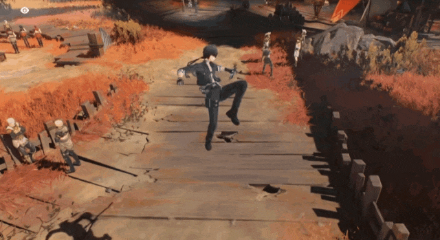 现在好了,开发组放开了担子做,想着地图场景能不能更真实,更细致,然后直接就给玩家来了个大招,不仅给吊桥增加“物理碰撞晃动”,角色走在桥面上时,会有明显的晃动效果,而且还给角色添加下落特效碰撞效果,陈显出来的效果就是角色下路攻击时,或者落地时有一个动作动画特效显示。