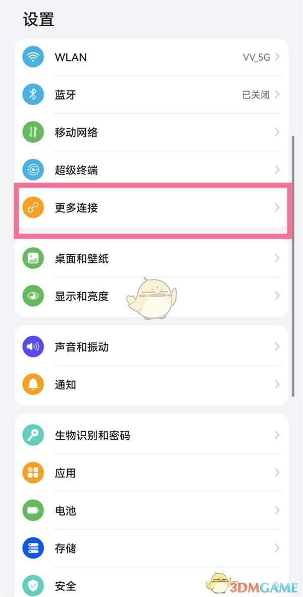 1、在手机设置菜单中点击更多连接。
