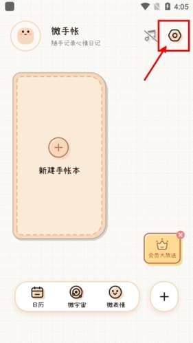 1、首先打开微手帐APP,在页面的右上角点击设置选项。