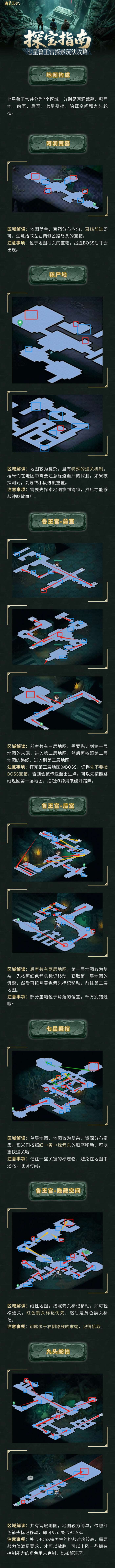 七星鲁王宫共分为7个区域,分别是河洞荒墓、积尸地、前室、后室、七星疑棺、隐藏空间和九头蛇柏。