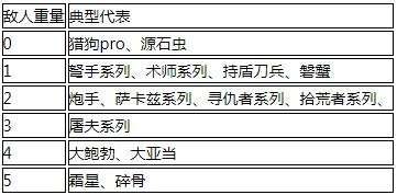 左边的数值是力度减去质量的结果,右边的数值是位移所需的时间。敌人的质量可以大致分为六个等级。