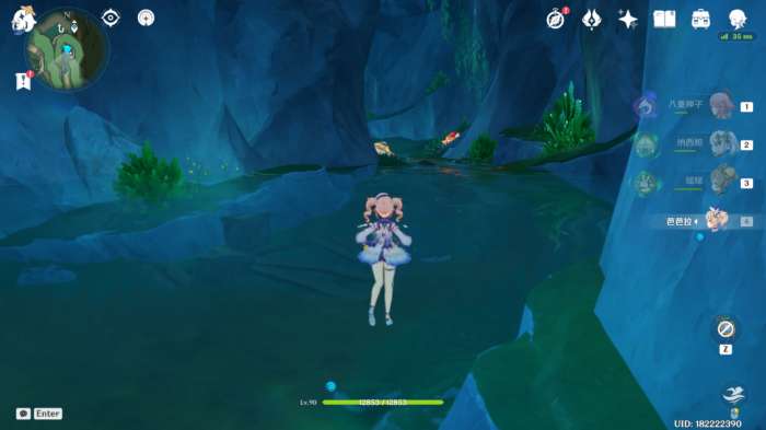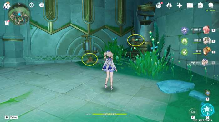 (65~66号)枫丹动能工程科学研究院区七天神像东边传送点,转西方向视角,在湖中央下潜,进入水域里