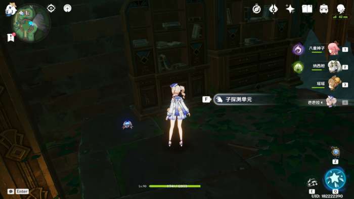 往左手边靠墙走,茉洁草旁边齿轮处有1个子探测单元