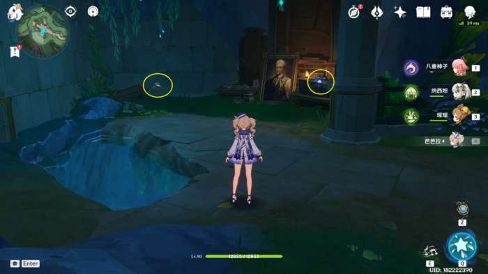 下台阶,往左手边看,肖像画画框旁有2个子探测单元