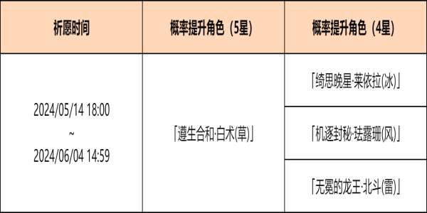 1、活动期间,限定5星角色「遵生合和·白术(草)」的祈愿获取概率将大幅提升!
