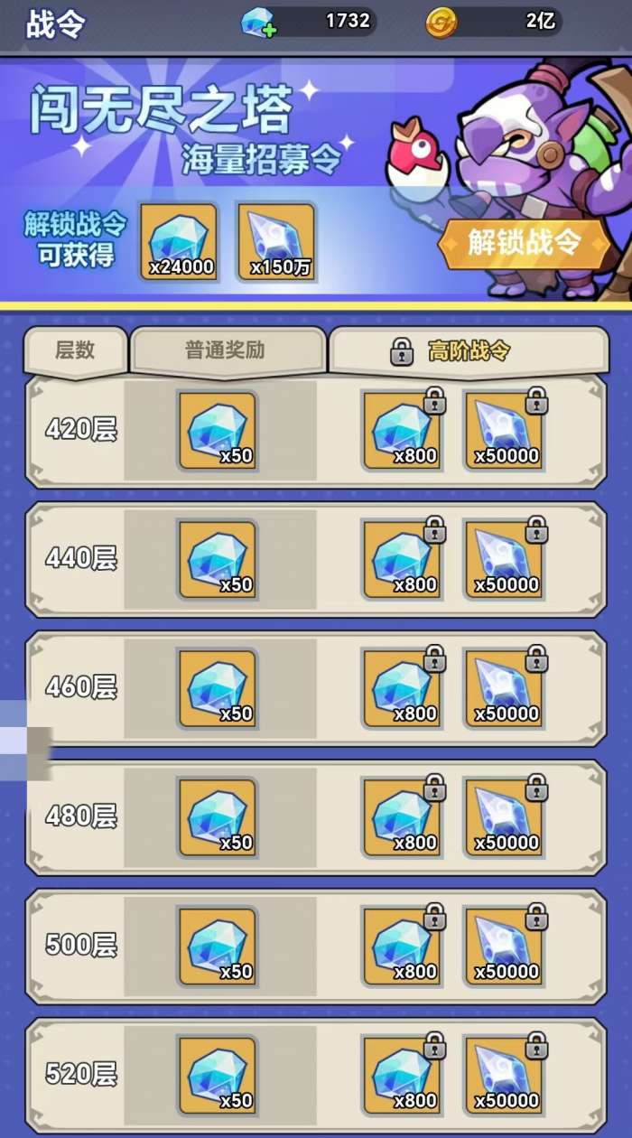 若考虑适度投入,首推月卡方案,其每日返还钻石量具备长期复利效应;其次为闯塔战令,激活后不仅解锁额外层数奖励,还可提升单层钻石获取基数。每日必购项包括金币副本、进阶石副本与秘典副本——金币副本建议在扫荡收益达100钻石及以上时购入,存在触发双倍返还(200钻石)机制;进阶石副本有概率附赠招募券;秘典副本则稳定产出各类钥匙,是钥匙积累的主要渠道。