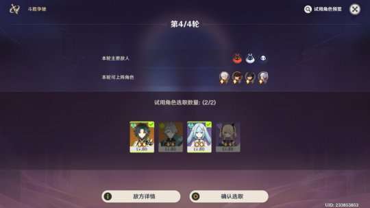 1.每轮选取四名角色,在指定时间内完成挑战