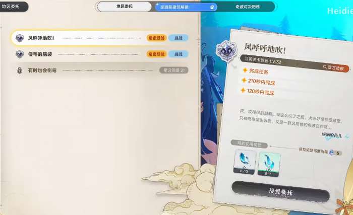 不过在接取委托任务之前,玩家们需要看一些任务的难度,一般难度为一星的话,基本上就是低级怪物,即便是低练度阵容也是能打过的,但是要遇到三星委托的话,则建议玩家们观察一会儿,如果任务中怪物的挑战难度太高了,就不建议接受了,因为接受无法完成的话,会浪费额外的星星数量,导致部分奖励无法领取完毕哦。
