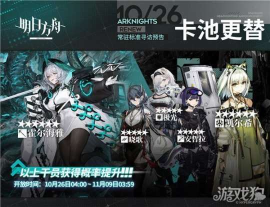 明日方舟的标准卡池将会更新,本次更新会有霍尔海雅、凯尔希的UP卡。若想了解更多后续活动和最新消息,请关注《明日方舟》游戏内公告、官网和双微,感谢大家的支持。
