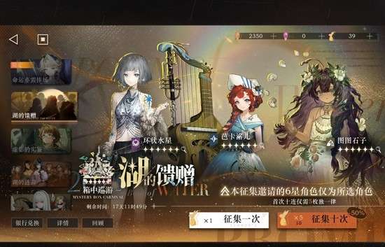 「湖的馈赠」自选三名范围内的角色且只能抽到这三名角色