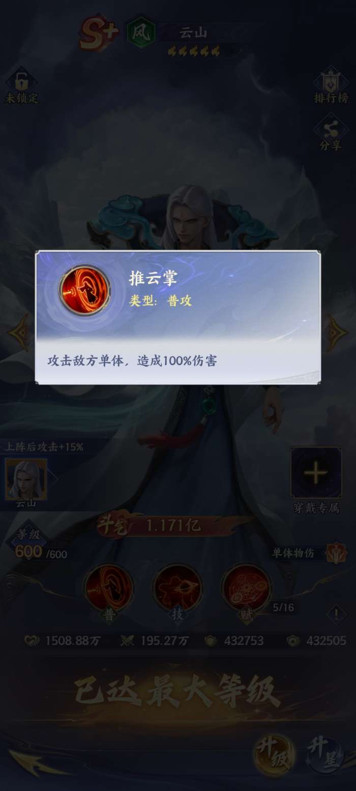 云山在手游中就是一个风系斗者,还是比较受到大家关注的。拥有较强的单体物理性伤害能力,它的普通攻击推云掌。看上去好像比较平淡,可是却能够精准的打击敌方单体,会直接造成100%伤害,这样的伤害足以让敌人甘拜下风。因此在这一个阶段,那自然就可能会有更大的伤害。所以在释放技能的一瞬间,那对于敌人来说,想要躲避也会有较大的难度。