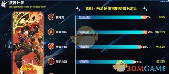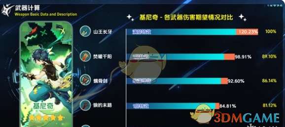 2、基尼奇:虽然是纳塔户口,但因其造成的伤害大都是元素战技伤害,较难保证覆盖率。不过在精炼 5 阶时,也能有不错的表现。