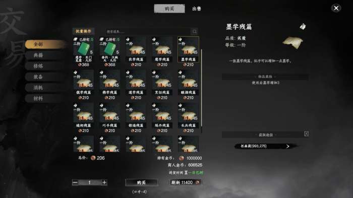 来到949.901书画商购买属性书,限购45本