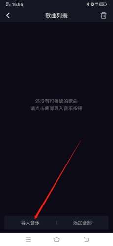 4、然后在歌曲列表中,点击左下角的“导入音乐”;