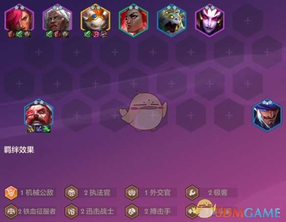 可以从3个随机以往赛季羁绊中选择1个羁绊效果辅助战斗,羁绊层级只有1和2。在每场对局的【3-5】回合,可以从前两个回合选择的羁绊中,选择其中一个将其升级为2层级。