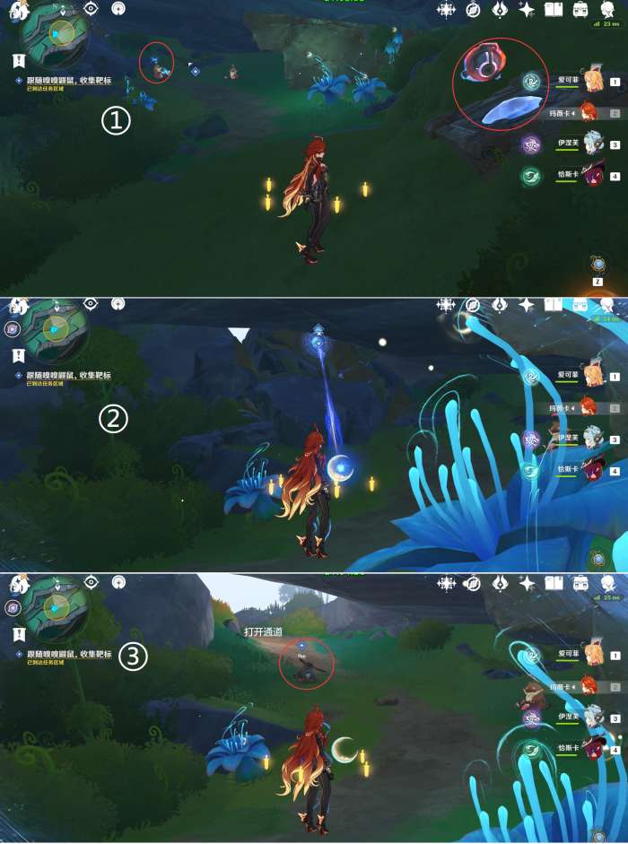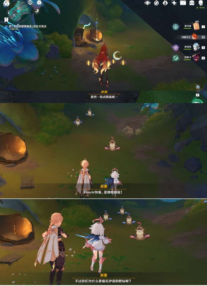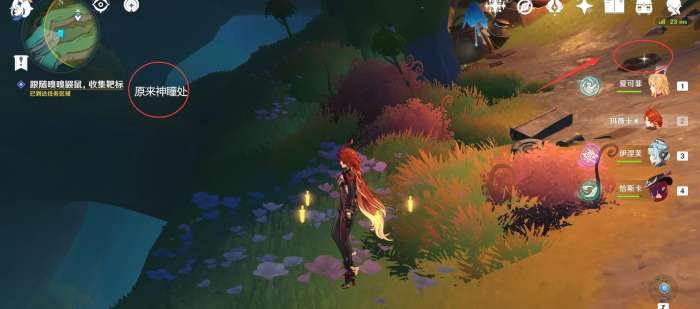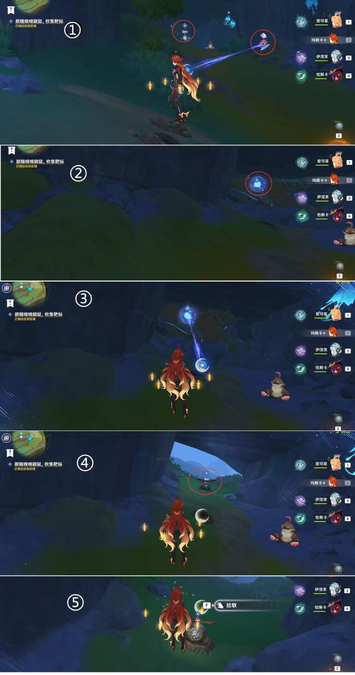 拾取靶标之后,鼹鼠会带着主角去刚才几处非任务宝箱和神瞳处。