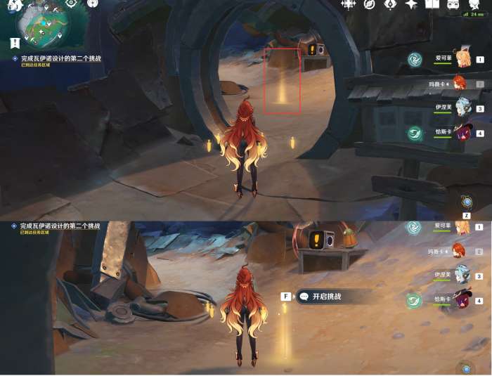 跟随指引来到任务地点,与光柱交互,开启挑战。