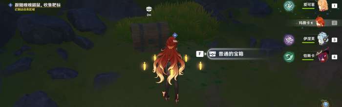 跟随嗅嗅鼹鼠,收集第一个靶标后,第二个处出现宝箱3:普通的宝箱。