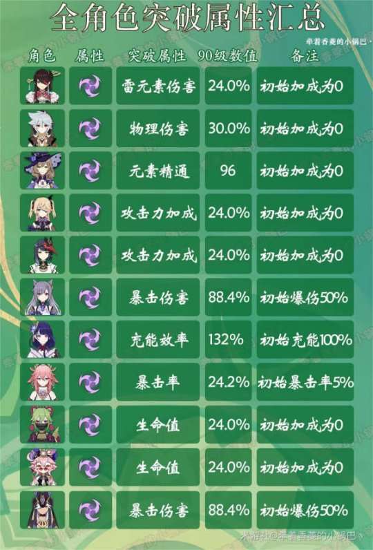 软件提交 专题合集 热门手游各位小伙伴们好呀,本帖给各位小伙伴整理了全角色突破属性。