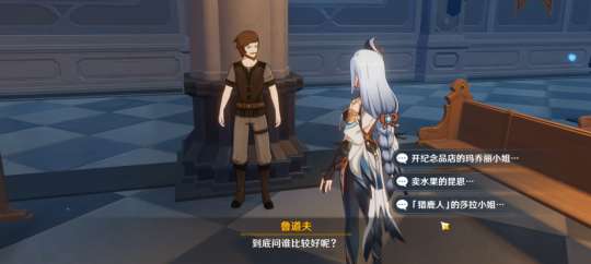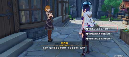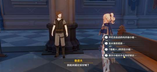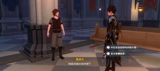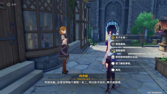 鲁道夫要给妻子送个礼物,但不知道送什么好,与我们商量去找其他商店老板询问礼物推荐,首先按顺序选择去找纪念品商店的玛乔丽吧