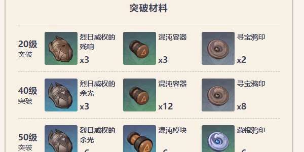 40级:烈日威权的余光x3、混沌容器x12、寻宝鸦印x8;