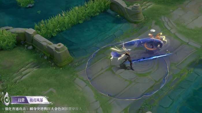未觉醒状态:瞬身突进携巨大金色剑影贯穿敌人。