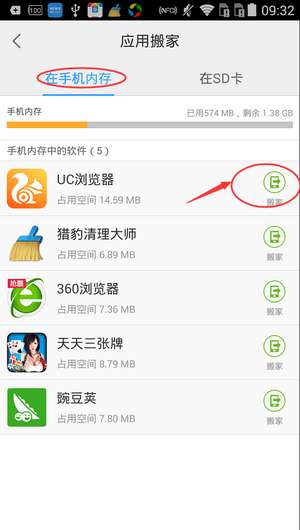 7、点击你要搬家的软件后面的“搬家”