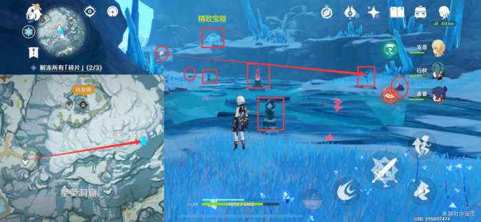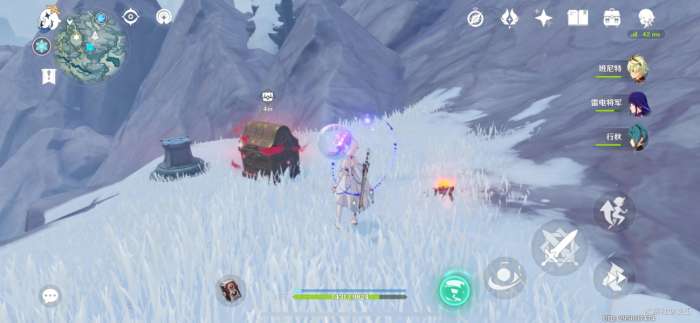 PS:大家在前往之前,注意在雪上时的严寒值,严寒值满了,会使丢失生命值;可以靠近热源,消减严寒值;建议带个火系角色,方便点燃火堆、火盆、破冰盾