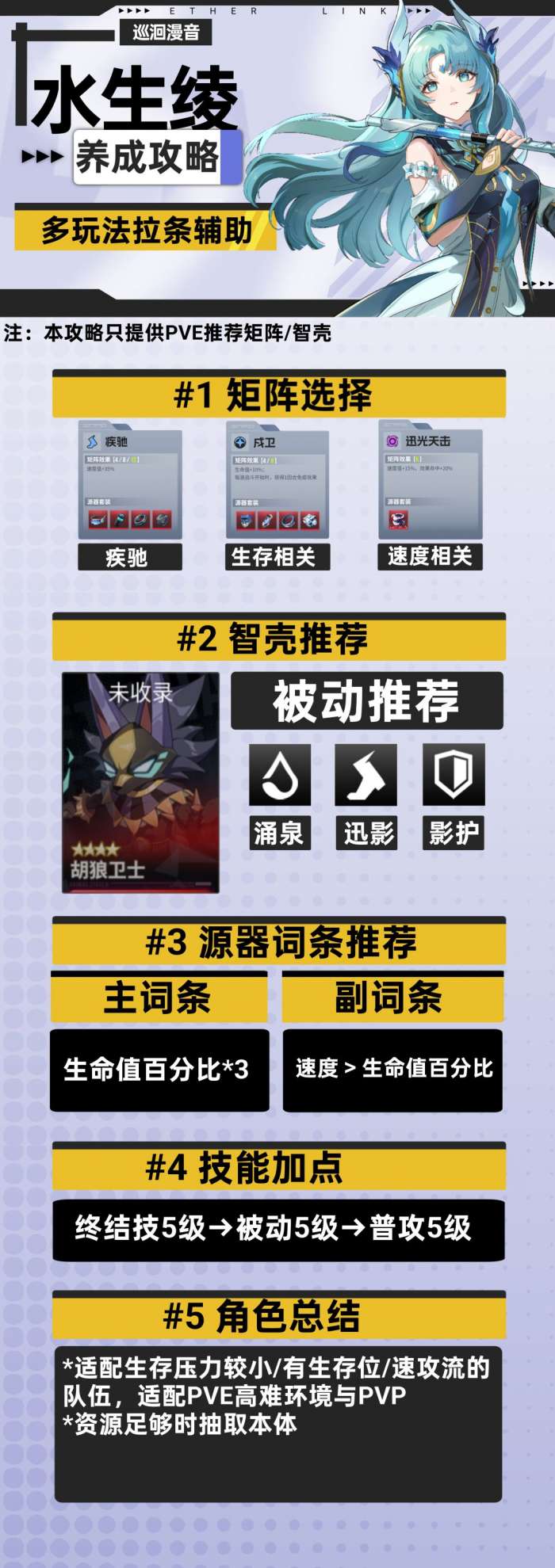 水生绫技能模组决定了她可开发的玩法多样,并不局限于特定矩阵,本次攻略lala只为大家推荐较为稳定的矩阵搭配
