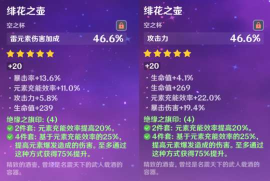 暴击后伤害相差一万,算取期望雷伤杯高了五万多,所以我选择雷伤杯。