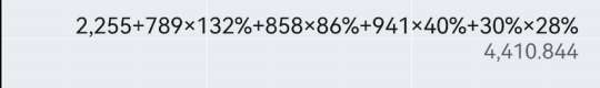 (2255+778*20%+778*20%+789*132%+858*86%+30%*28%)*(681%+6.61%*60)*(1+189.3%)*(1+288.3%*25%+90*0.3%+121.9%+41.9%)*(1+30%/2)*48%=275322.84