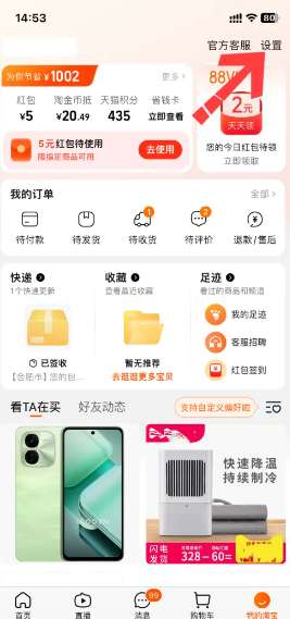 1、在淘宝的我的淘宝页面,点击设置选项。