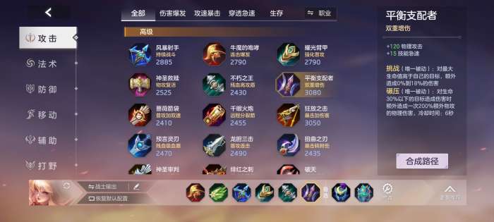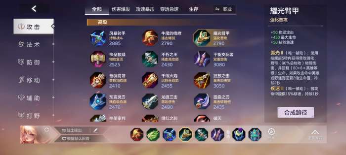 獠牙增加物理穿透,是目前的主流玩法,张出尘的ad加成并不高,这里选择物理穿透增加攻击伤害。