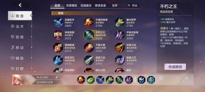 第三件装备开始就出现分支了,如果是顺风局可以直接出平衡支配者增加爆发能力,如果是处于势均力敌期,可以选择耀光臂甲进行切c操作,或者选择出不朽之王,增加容错率。
